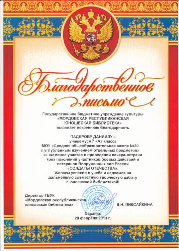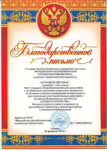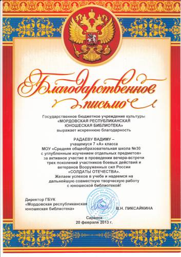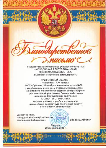 БЛАГОДАРНОСТЬ МРЮБ