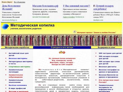 На его страницах можно  найти очень много разнообразной информации, такой необходимой для проведения в школе обобщающих и открытых уроков, тематических дней и предметных недель, классных часов, познавательных игр, КВНов, праздников, конкурсов, олимпиад и различных досуговых мероприятий в летних оздоровительных лагерях.
