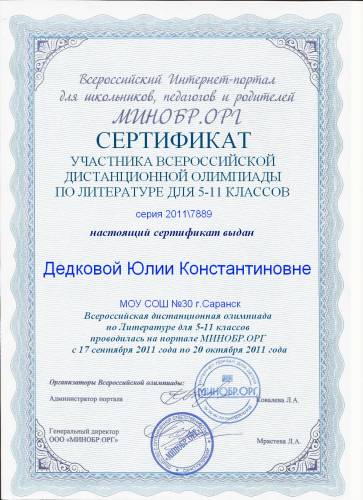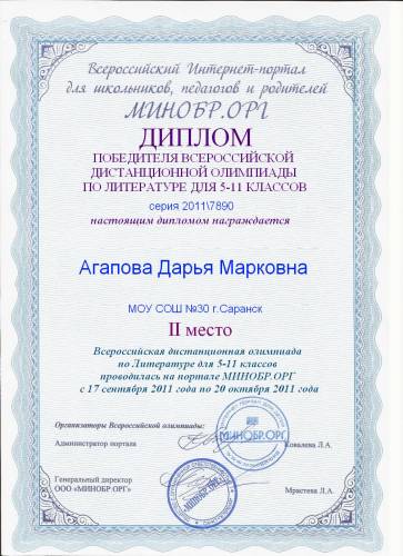 ВСЕРОССИЙСКАЯ ДИСТАНЦИОННАЯ ОЛИМПИАДА ПО ЛИТЕРАТУРЕ